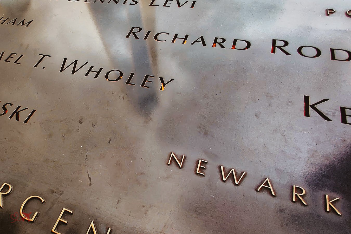 Um die beiden Brunnen herum, in beheizten Kupferplatten geschnitten, die Namen der Opfer dieses Tages. Auch die Namen der Opfer von anderen Schauplätzen dieses Tages findet man hier. Zusätzlich wurden die 6 Opfer des ersten Bomben Attentats auf das World Trade Center von 1993 verewigt.
