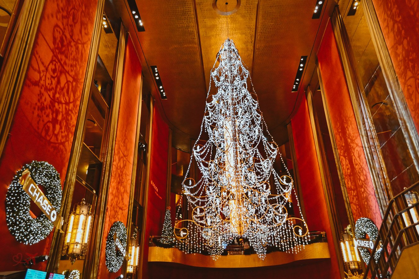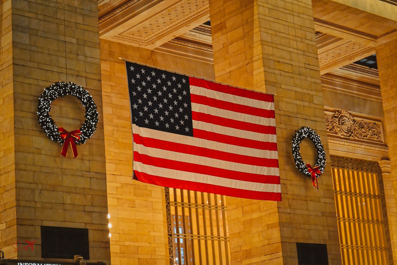 Als nächstes unweit von der Public Library entfernt befindet sich das Grand Central Terminal, einem der architektonisch eindrucksvollsten Bahnhöfen der Welt. Auch hier findet man Weihnachtsgirlanden und festlich geschmückte Kränze an den Wänden.