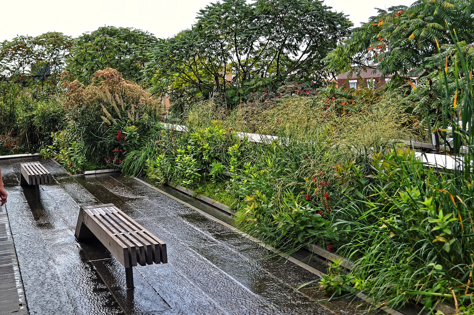 Über den teils sehr geschäftigen Straßen von Chelsea hat man einen ganz anderen Blick auf die Großstadt. Von einigen Stellen des Parks hat man die Möglichkeit den Verkehr wie im Kino zu beobachten. Holztreppen und -Bänke vor einer großen Glasscheibe laden dazu ein mehr oder weniger abgeschottet vom Lärm das Geschehen auf den Straßen zu beobachten. Auch wenn man sich mitten in der Stadt befindet kommt es einem ruhiger vor als anderswo.