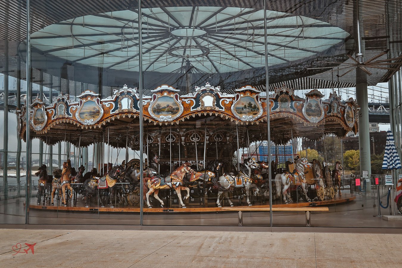 Auch der Empire Fulton Ferry Park ist einer der bekannten Parks in Brooklyn. Jeder kennt sicherlich Jane’s Carousel, dem berühmten Karussell hinter Glas, das direkt zwischen den beiden Brücken steht. Der Blick auf die New Yorker Skyline mit der Brooklyn Bridge von dort ist einfach nur toll.