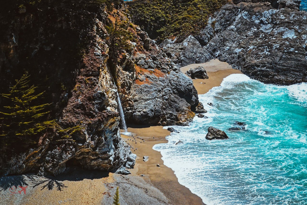 Das Wasser des McWay Creek fiel bis ins Jahr 1983 direkt in den Pazifik. Nach einer regenreichen Zeit kam es vermehrt zu sogenannten “Land Slides”. Erde von den Bergen verteilte sich über den Highway bis hinunter zum Meer. Dadurch entstand der Strand, auf den der Wasserfall nun prasselt.