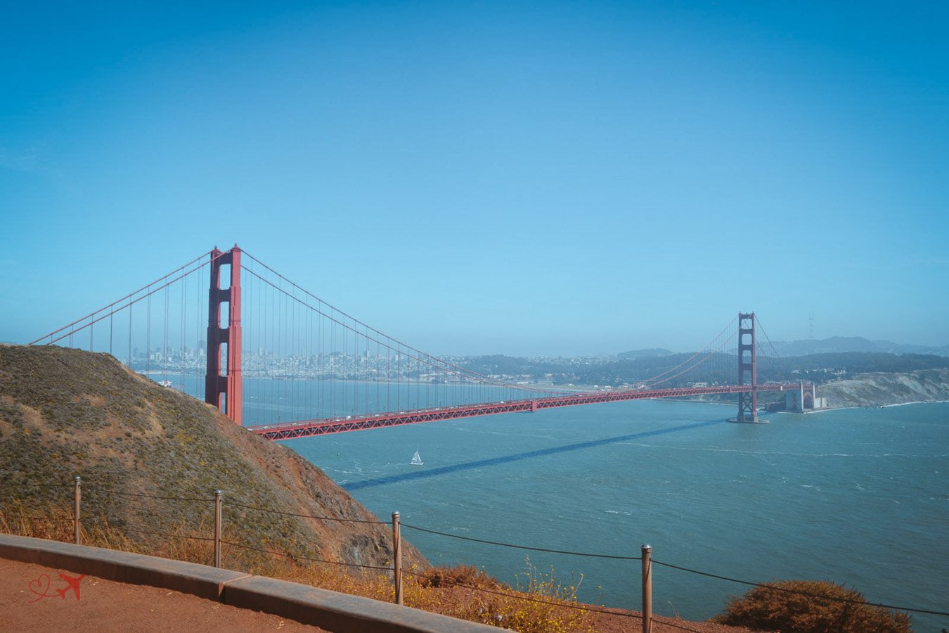 Von der Nordseite aus hat man einen traumhaften, wenn nicht sogar epischen Blick auf die Brücke und die Stadt San Francisco im Hintergrund. Sieht man genau hin, kannst Du auf dem Foto ein Segelboot erkennen, das gerade unter der Brücke durchfährt – Traumhaft.