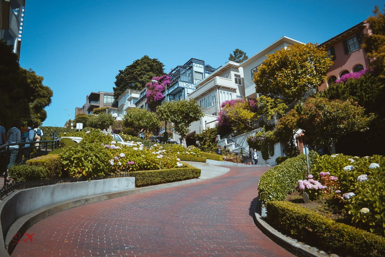 Die Straße zu befahren ist etwas, dass Du einmal im Leben auf jeden Fall selbst machen musst! – Die Lombard Street hat in einem Teilstück von nur 145 Metern ein Gefälle von 27%, was für viele Autos aber auch Fußgänger so problematisch war, das es 1922 mit 8 engen Kurven entschärft wurde.