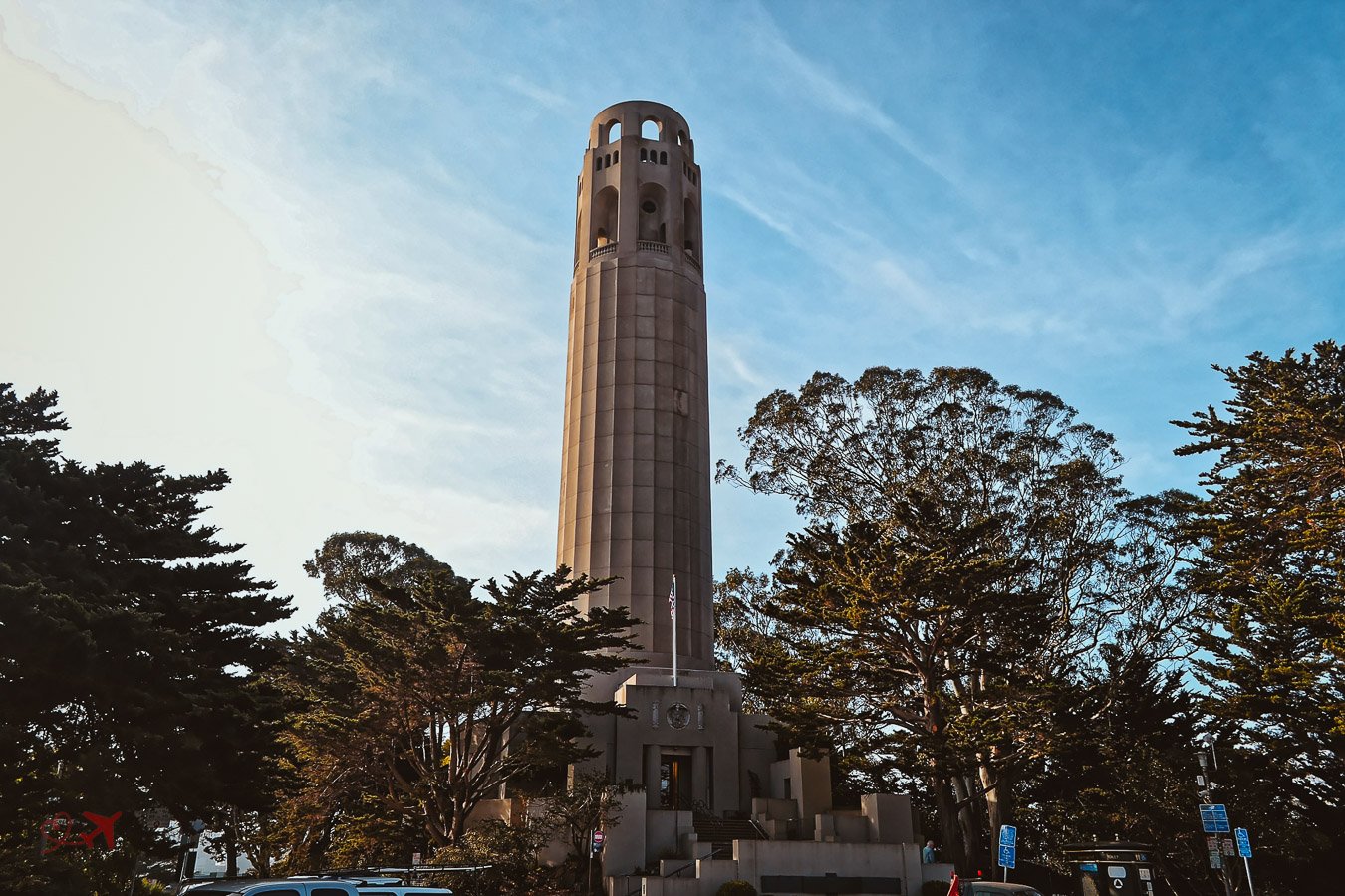 Der 64 Meter hohe, von Arthur Brown Jr. und Henry Howard 1933 erbaute Turm thront auf einer der vielen Hügel von San Francisco. Für nur 7 Dollar kann man sich zu Fuß, oder mit dem Fahrstuhl nach oben begeben.