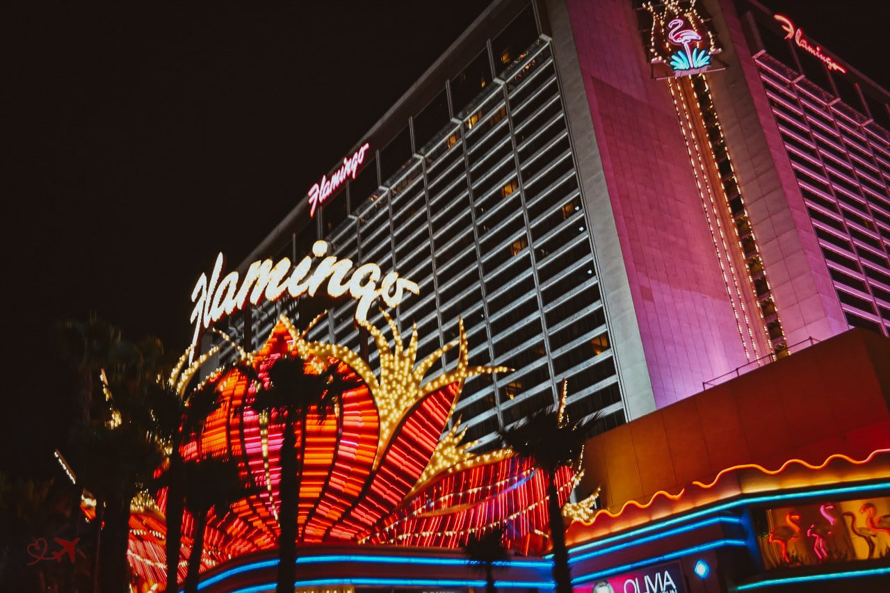 Mit dem Auto fuhren wir dann wieder zurück bis zum Schild und von dort aus so langsam wie möglich über den Las Vegas Strip. Vorbei ging es auch an so geschichtsträchtigen Hotels & Casinos wie z.B. dem Flamingo, ein Juwel aus den Anfängen von Las Vegas und das Casino das Bugsy Siegel kaufte um in dieses lukrative Nebengeschäft einzusteigen.