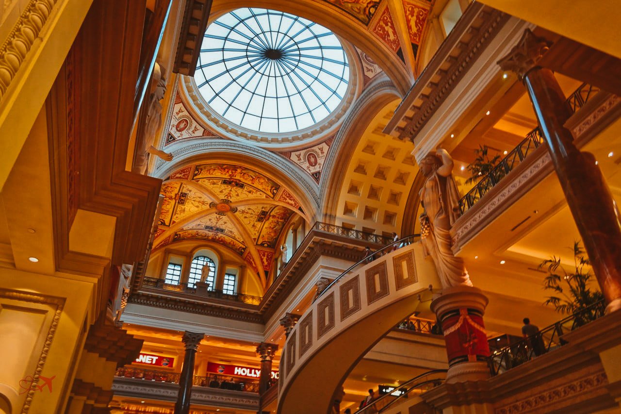 Nach dem Bellagio gingen wir am Cesars Palace vorbei. Da wir die ganze Zeit schon auf den Beinen waren, wollten wir uns die Besichtigung dieses Hotels für später aufheben. Leider hatten wir es zum Schluss dann doch nicht mehr geschafft. Direkt am Hotel gibt es “The Forum Shops” ein recht teures Shopping Center im italienischen Stil. Eindrucksvoll ist auf jeden Fall der nachempfundene Trevi-Brunnen an einer Ecke des Centers.