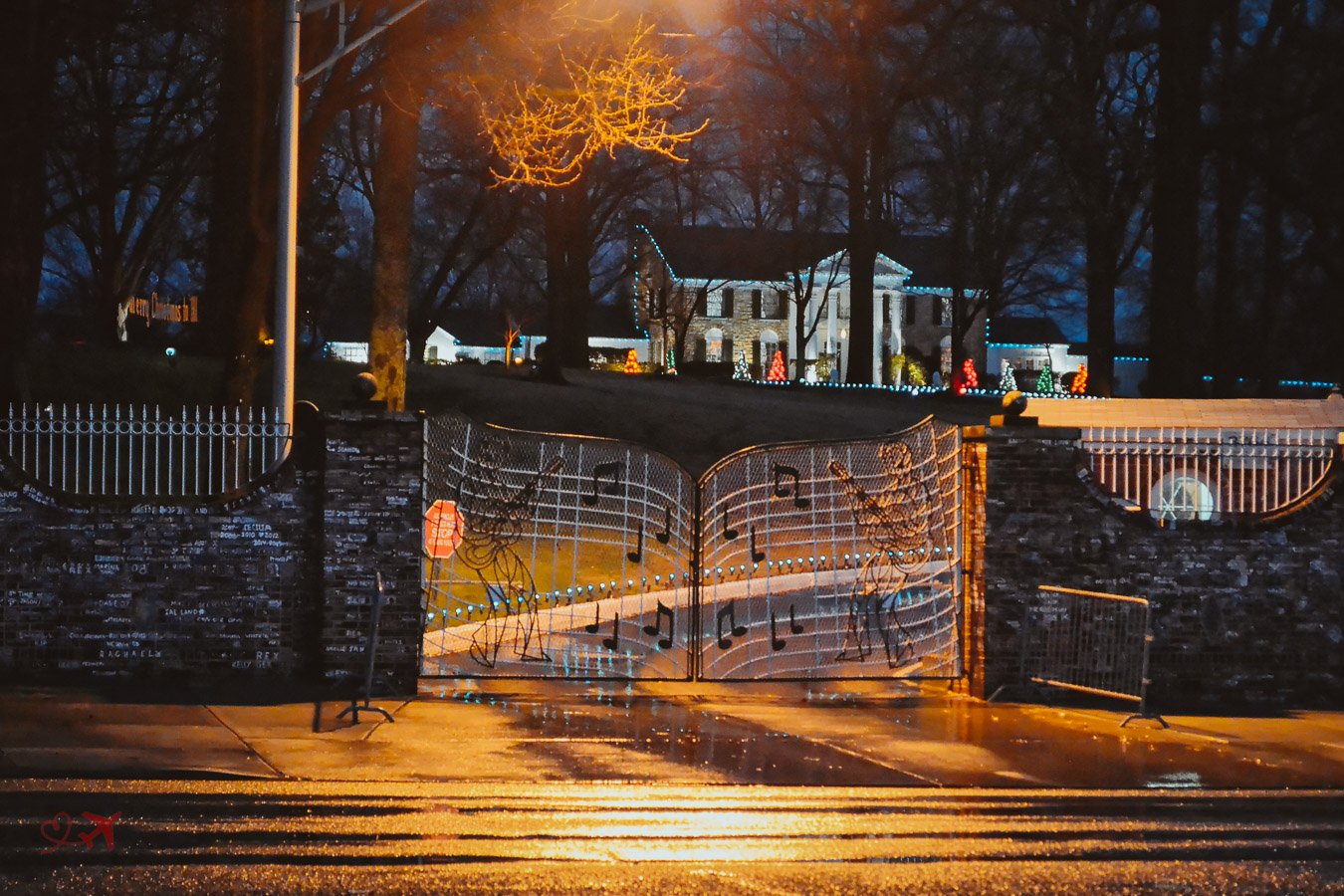 Elvis liebte die Weihnachtszeit über alles und genau das sieht man auch, wenn man schon am Haus vorbei fährt.